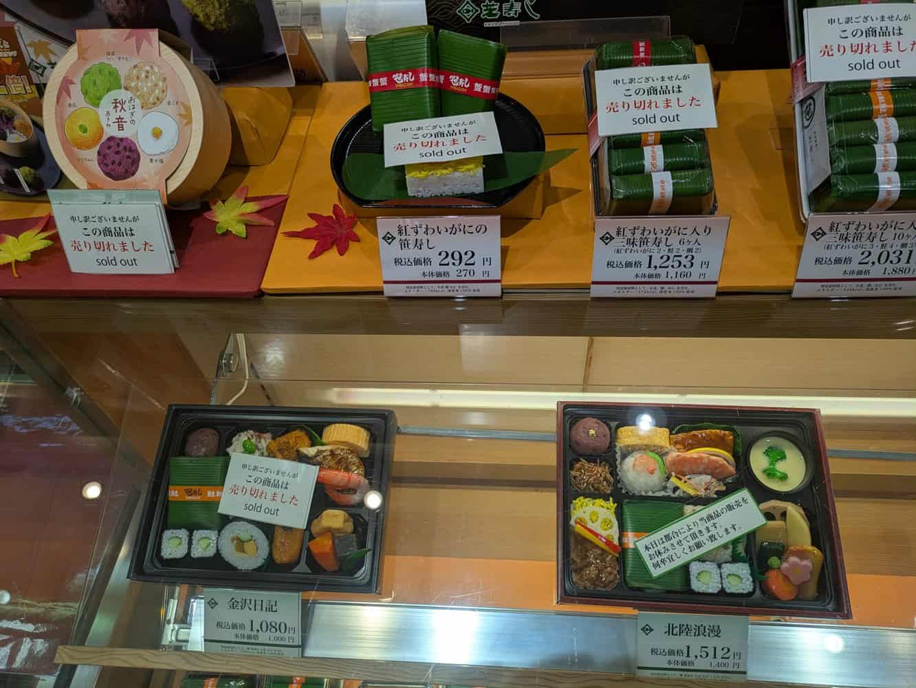 But finding vegetarian food is likely to be challenge on day trips out of Kanazawa. At the market and railway station, there are plenty of attractive options such as bento boxes but conversations with sellers were not easy and I did not find anything vegan/vegetarian that I could buy without any doubt whatsoever!