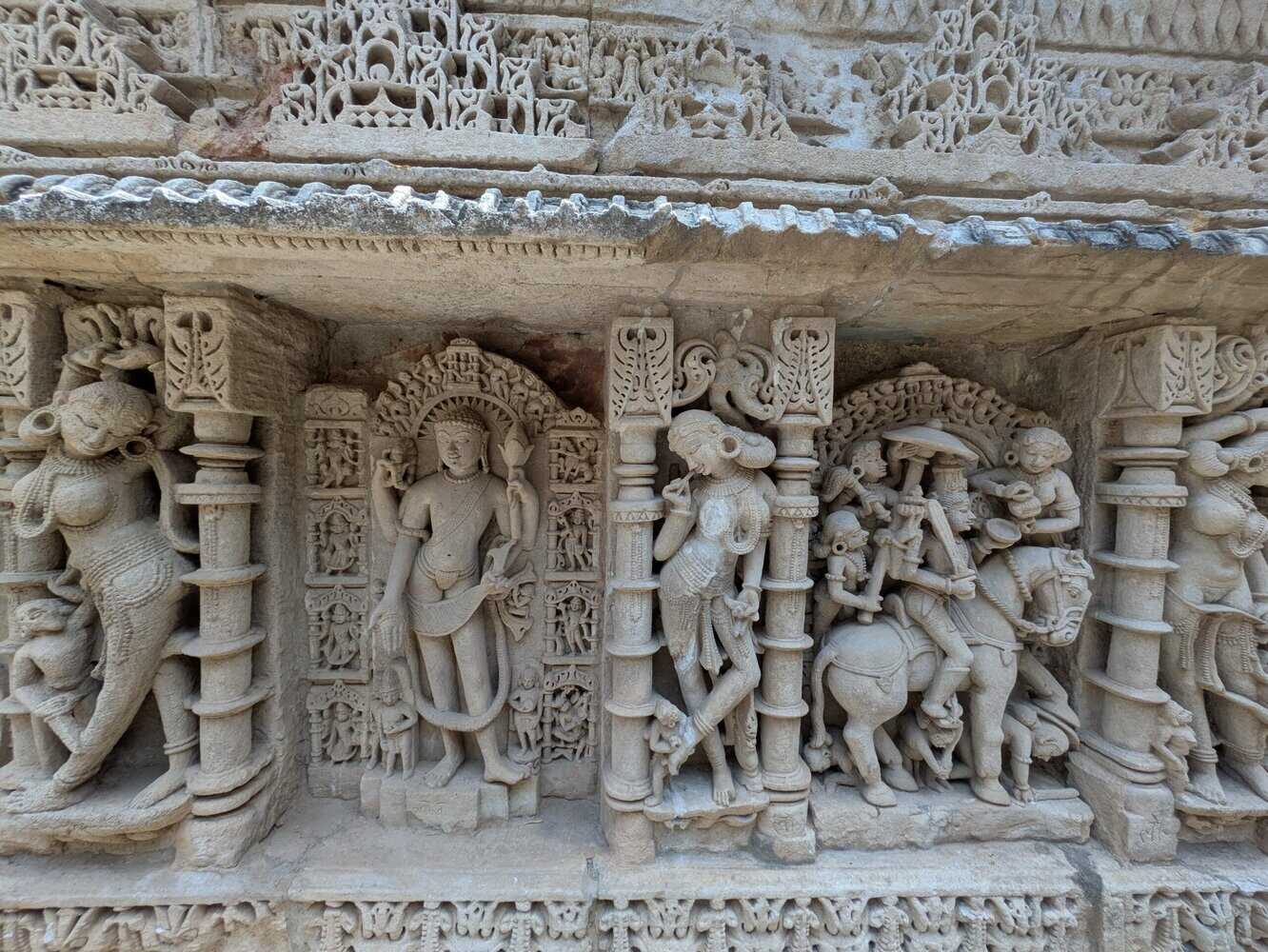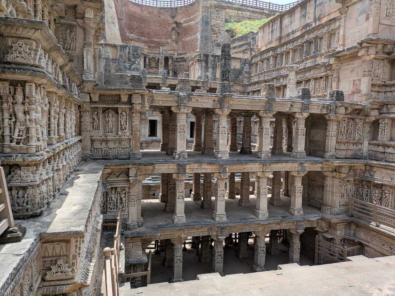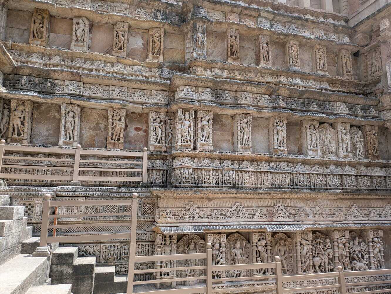 A UNESCO World Heritage Site. Intricate carvings. Sculptures inspired by the incarnations of Lord Vishnu and Apsaras, the celestial women. Constructed by a grieving Queen in memory of the King(generally the reverse is true). Almost 1000 years old. Inverted temple design with seven levels of subterranean architecture.
